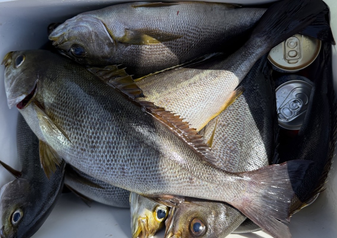磯釣り 本日磯釣り釣果🎣 キツ、グレ、イサキ、石鯛、ヒラスズキ🐟 今日はバトルロイヤルでした。 水温上がっててイサキの調子が絶好調🙂 釣れてるところで1人20匹は釣れてました。 水温18.2℃ 明日も磯釣り出船予定です🗓️