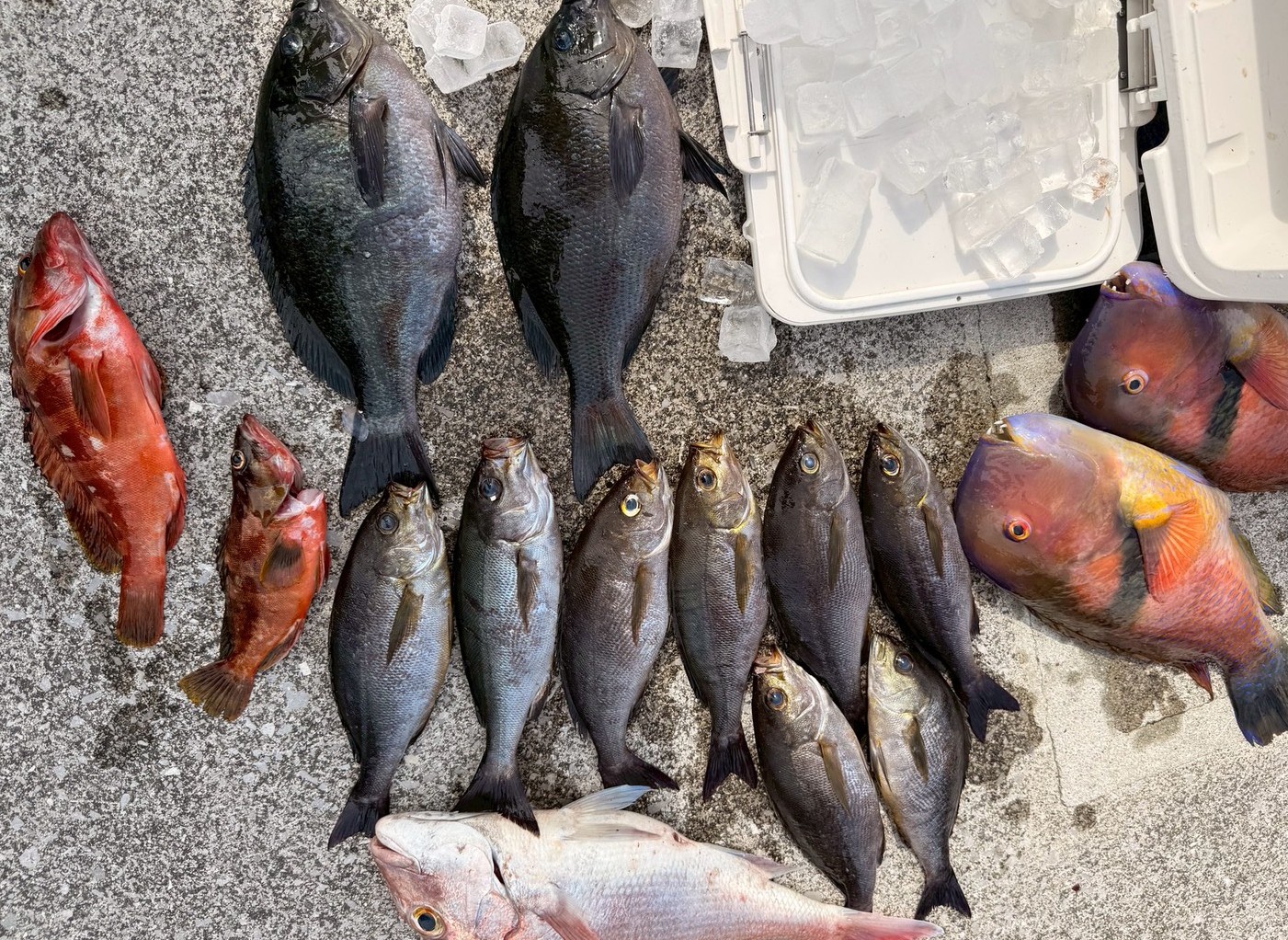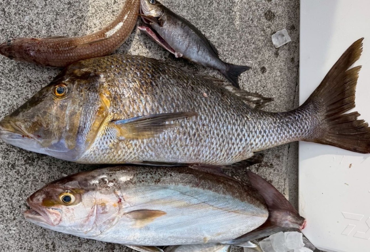 磯釣り 本日磯釣り釣果🎣 グレ、イサキ、フエフキダイ、アカハタ、マルハゲ、イラ🐟 本日船釣り釣果🎣 真鯛、カンパチ、エソ、メッキアジ、ウツボ、ギンフグ🐡 国境を超えてようこそ日本へ🇯🇵 磯も少なく、広々使いました! 釣れてくれて良かった。 潮が動かない船釣りは難しい釣りでした🎣 やっぱドテラ流しが一番✌️ 明日も磯釣り出船します!(^^) 水温18.6℃